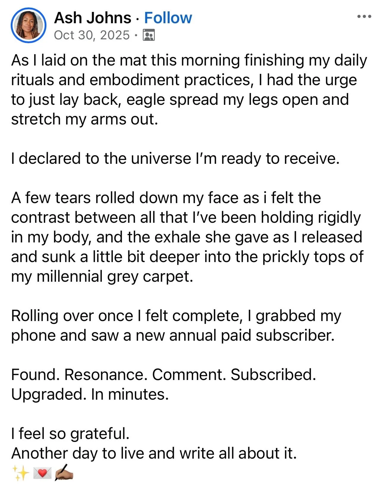 This is about understanding how your voice becomes recognizable, how your story builds trust, and how your writing can naturally evolve into opportunities — whether that’s a Substack, a book, or something you can stand behind with pride.