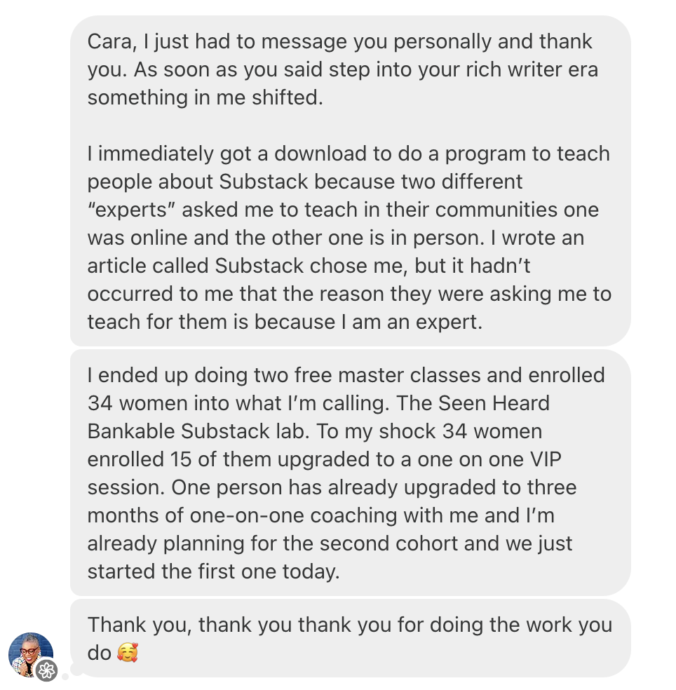 Twice a month we meet on Zoom for a 90-minute live write-in where you’ll finally sit down and do the work alongside other ambitious women doing the same.
